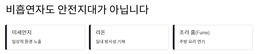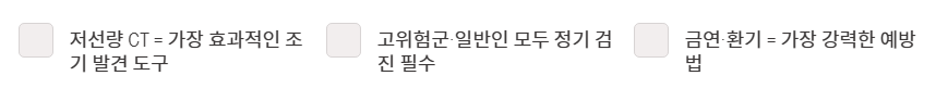 - 비흡연자도 안전지대가 아니며, 환경적 요인에 의한 발병 가능성을 열어두어야 합니다.