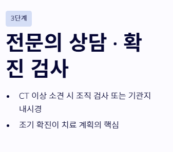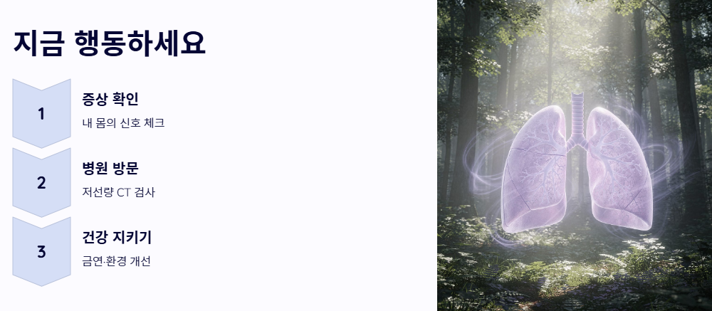 폐암 초기증상이 의심되거나 고위험군에 해당한다면 다음의 단계별 전략을 통해 빠르게 대처해야 합니다.