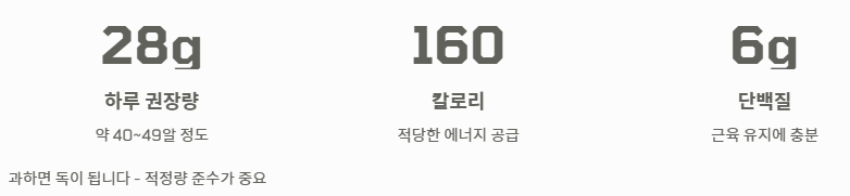 - 섭취 팁: 무염 제품 선택, 하루 한 줌(약 45알) 준수, 껍질째 먹기.