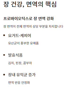 - 장내 유익균을 늘려 면역 반응을 안정화