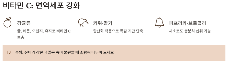 - 면역세포에 필요한 비타민·미네랄·단백질을 충분히 공급할 것