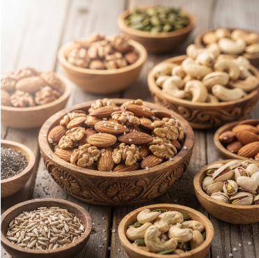 - 아몬드, 해바라기씨, 땅콩, 아보카도, 식물성 기름, 시금치