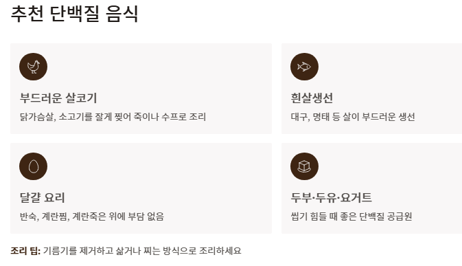 - 두부·두유·요거트: 씹기 힘들 때 좋은 단백질 공급원