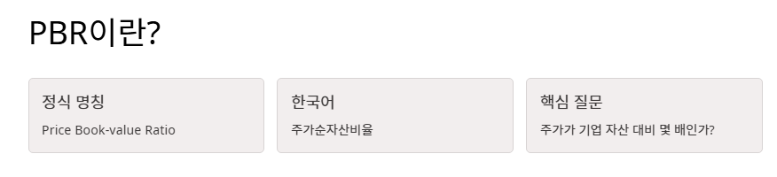 - pbr 이란 주가를 기업의 순자산 가치로 나눈 비율로, 자산 대비 주가 수준을 보여줍니다.