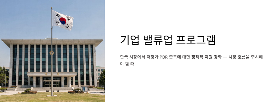 - 정부 정책 및 밸류업 프로그램: 최근 한국 시장에서는 '기업 밸류업 프로그램'을 통해 저평가된 pbr 이란 키워드를 가진 종목들에 대한 정책적 지원이 강화되고 있으므로 시장 흐름을 주시해야 합니다.