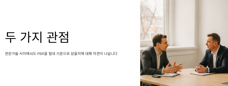 전문가들 사이에서도 pbr 이란 수치를 투자 결정의 절대적 기준으로 삼을 것인지에 대해 의견이 나뉩니다.