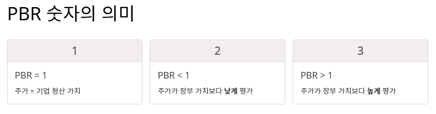 - PBR 1배 미만은 주가가 기업의 청산 가치보다 낮다는 것을 의미합니다.